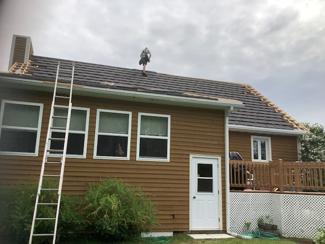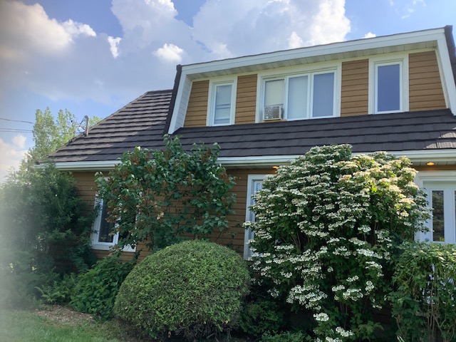 Mai Les bardeaux d'asphalte de la toiture "frisent" à vive allure ! Remplacés par des bardeaux d'acier garantis 50 ans ! Protection de l'environnement, l'étage plus frais l'été et plus chaud l'hiver !